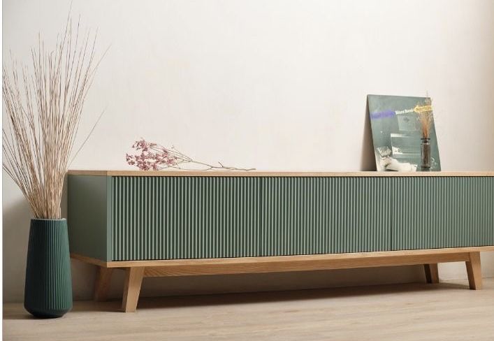 A timeless cabinet crafted in a rich caramel wood finish, highlighting smooth curves and a warm natural tone. The minimal palette enhances its classic character. Featuring soft-edge detailing, integrated drawers, and enclosed storage, it offers practical organization with a graceful, enduring presence.
