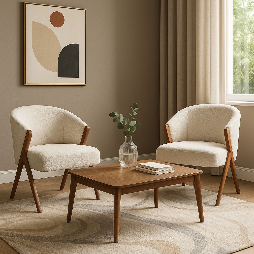 A contemporary luxury counter stool defined by its smooth walnut finish, paired…